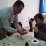 Стационар је најпре посетио ђакон Бранислав Јоцић из цркве Александар Невски и одржао је предавање корисницима о предстојећем празнику. Поделио им је и иконе са ускршњом молитвом. Поред тога, запослени из Japan Tobacco International учествовали су у радионици украшавање јаја декупаж техником. У овој радионици учествовао је велики број корисника као и запослених.