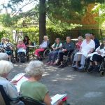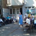 01.06.2018. Чланови хора Дома Вождовац и корисник Дарко Јагодић припремили су културно-забавни програм за остале станаре. Одлучили су да програм изведу у хладовини дворишта на обострано задовољство, па се дружење претворило у право уживање.